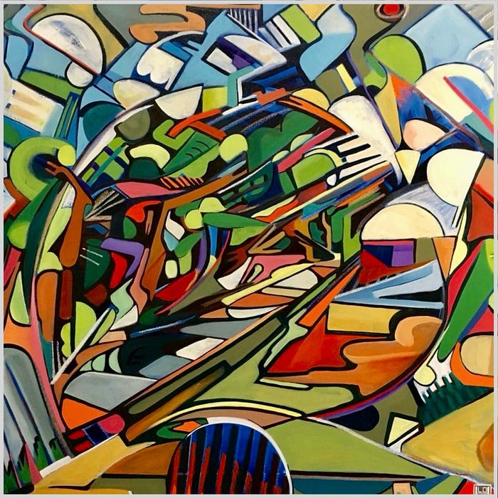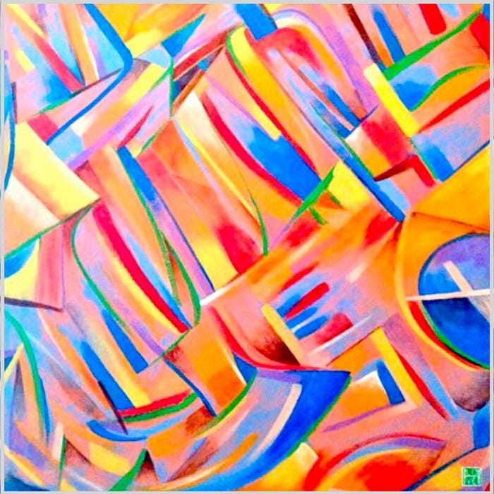 Few contemporary artists embody the principles of Interpretable Reality as effectively as Harrison Love. The “Bright Futurism,” series within his work operates as a new visual language, designed not to dictate meaning but to compel viewers into an active process of interpretation. Rather than imposing a fixed narrative, Love’s paintings within the series function as fluid spaces of meaning, where abstraction, mark-making, and form interact in ways that evoke different associations for each viewer.